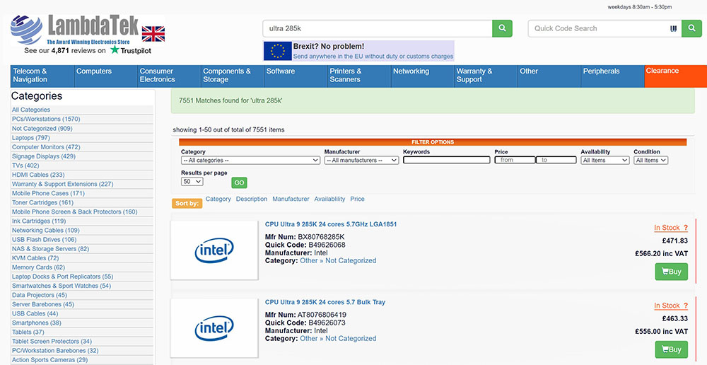 根据报导,国外 LambdaTek 销售网站已经抢先透露 Arrow Lake-S 部分型号的价格,他们也找到一些型号的英国售价。