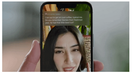 当你使用FaceTime 或是其他影像会议通话时,在画面上会即时地将对方所说的内容以文字的方式显示于屏幕上,方便许多听障人士可以快速地了解其他人所说的内容。